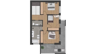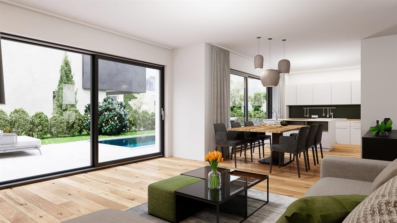 Le case si estendono su quattro piani. L'ingresso è sul semiterrato, dove si trovano ampi locali che possono essere utilizzati come palestra, sala giochi o oasi di benessere. Al piano terra si trovano i soggiorni con un'ampia facciata a ballatoio, un bagno e uno studio. Al primo piano, tre camere da letto e altri due bagni offrono ai residenti il massimo comfort.